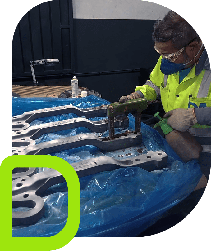 A técnica do END por partículas magnéticas também revela desgastes superficiais, abrasões ou deformações, o que é fundamental em aplicações em que o desgaste pode comprometer a funcionalidade ou a segurança do componente.